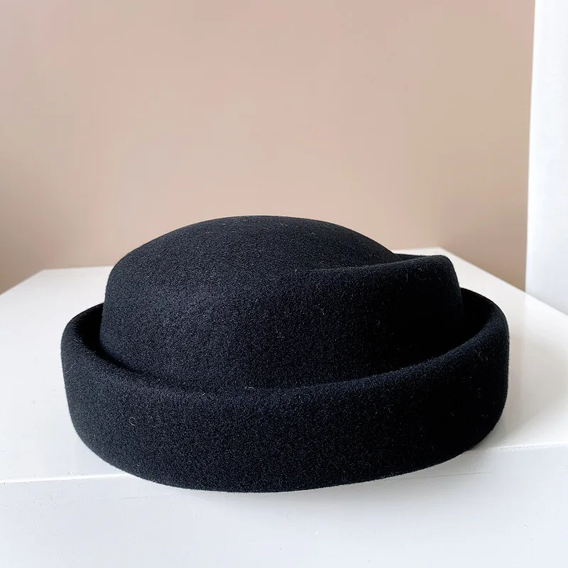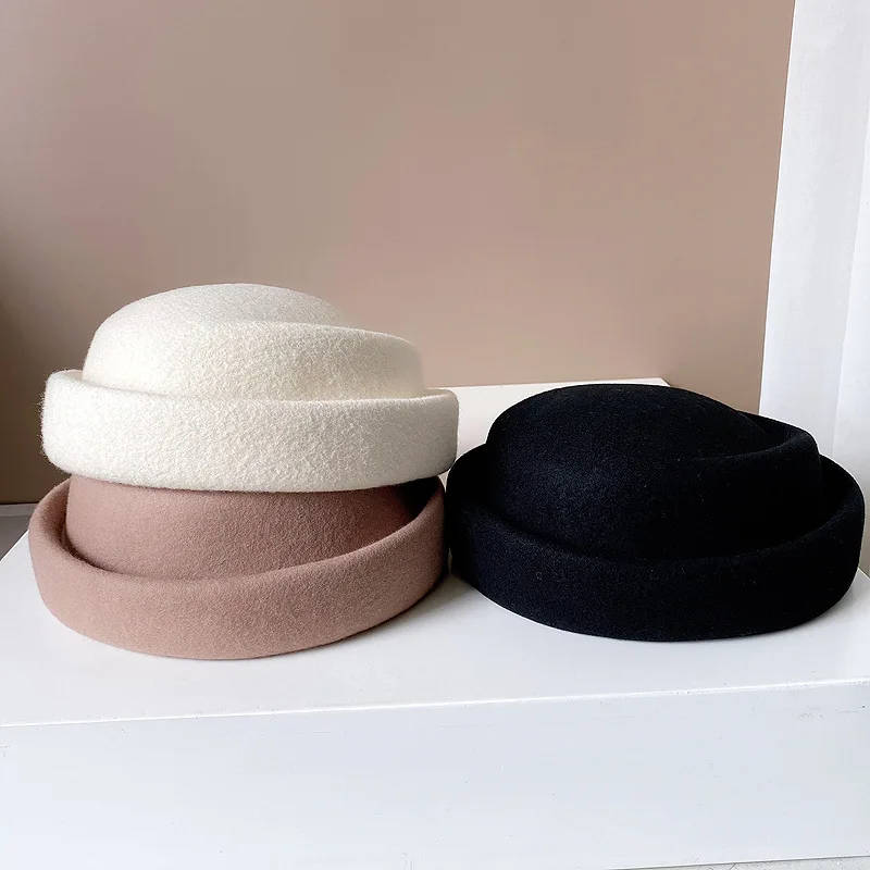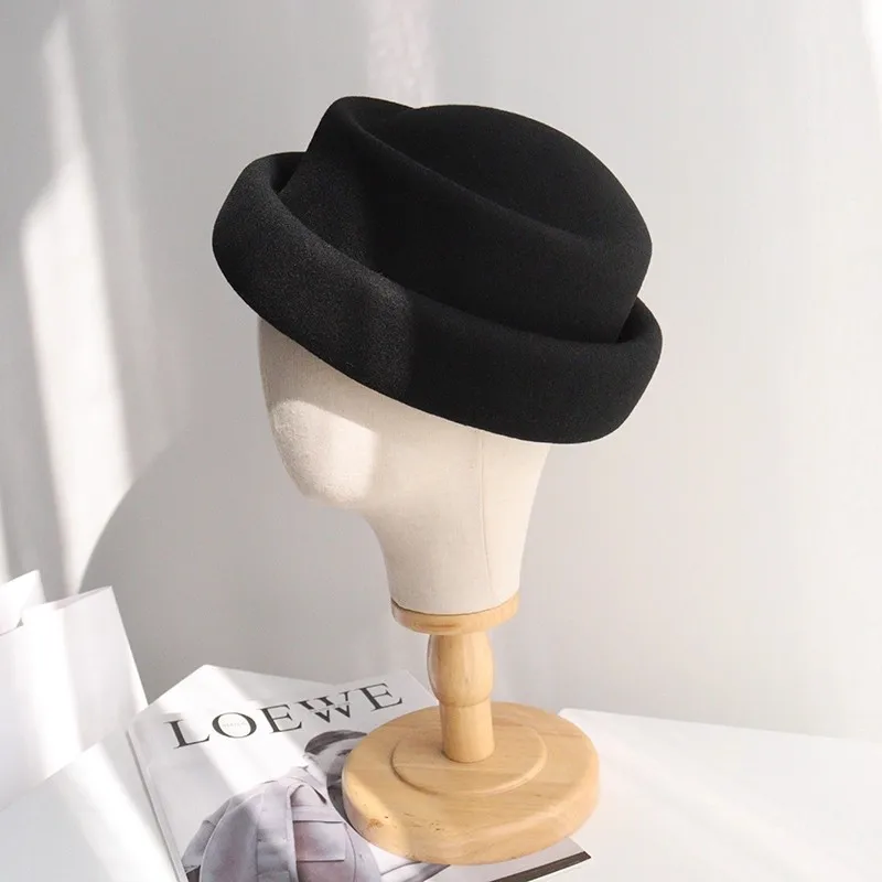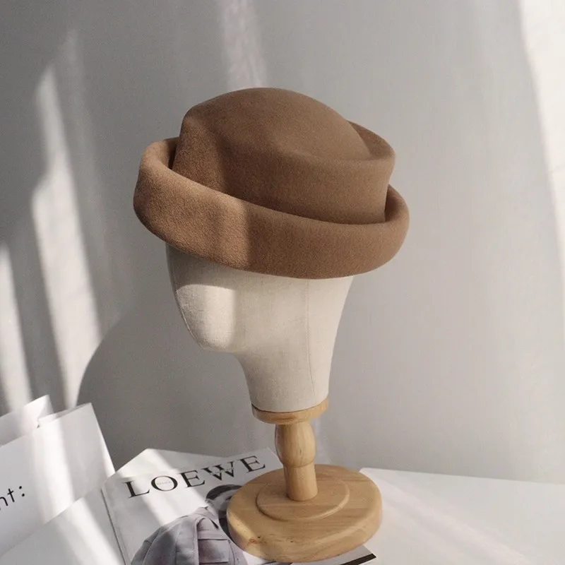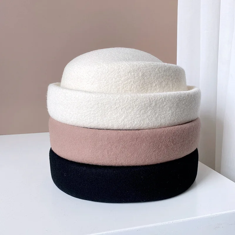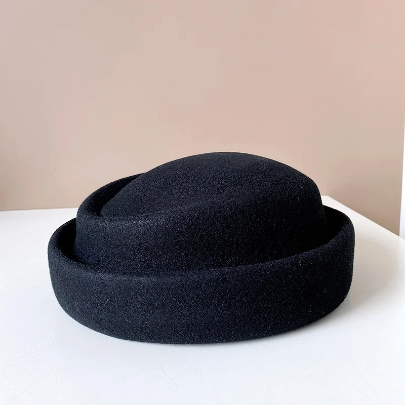 Concave Top Wool Beret Pillbox Hat